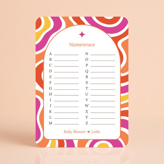 Met deze invulkaarten vullen gasten voor elke letter van het alfabet een babynaam in. Van klassieke namen tot grappige vondsten, dit spel zorgt voor plezier en creatieve uitspattingen.